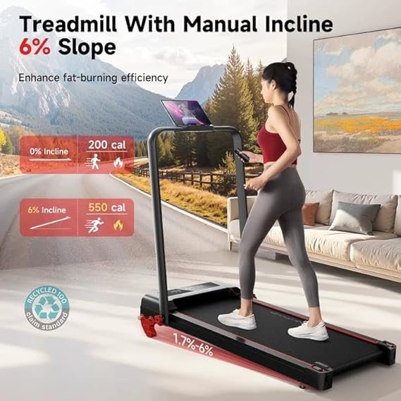 Our Walkingpad foldable treadmill with a walking pad features an incline of 10%, that is manual that simulates more realistically climbing situations to increase calorie burning by as much as 60 percent. The first step is to set it up with no equipment, you can make your the workout to be more efficient and reach your goals for fitness and reach your ideal body.